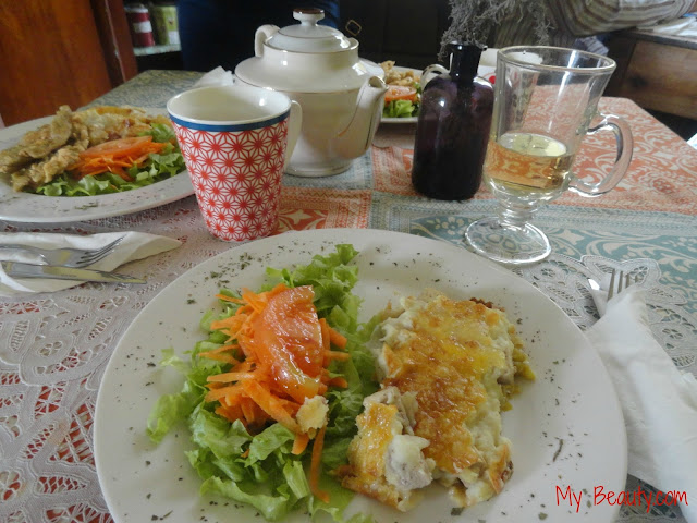 Neste dia fui acompanhada por 2 amigas. Eu escolhi o empadão de alho francês. Estava absolutamente delicioso! Para além do alho francês tinha ainda tofu e amêndoa, que tornava o prato especial. Uma das minhas amigas ecolheu os peixinhos da horta e a outra o misto, uma das opções que eles oferecem, juntando um pouco de cada um dos pratos do dia.